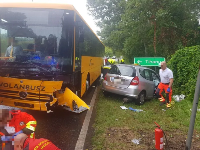 Busz és autó ütközött Tihanynál, mentőhelikoptert riasztottak
