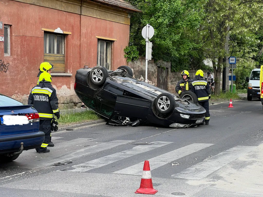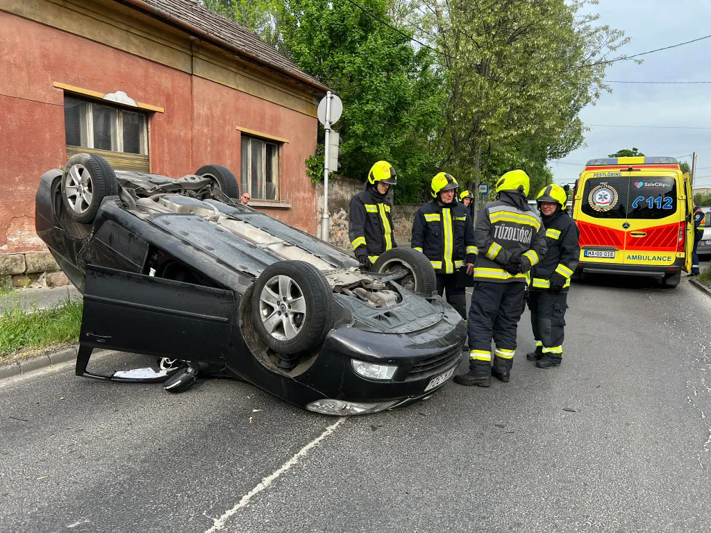 Elképesztő baleset történt hétfőn reggel Budapesten a 18. kerületben. Két autó ütközött egymással, az egyik fel is borult. A képeket elnézve csoda, hogy a gépkocsi sofőrje szinte sértetlenül, apróbb sérülésekkel kiszállt a gépkocsiból.