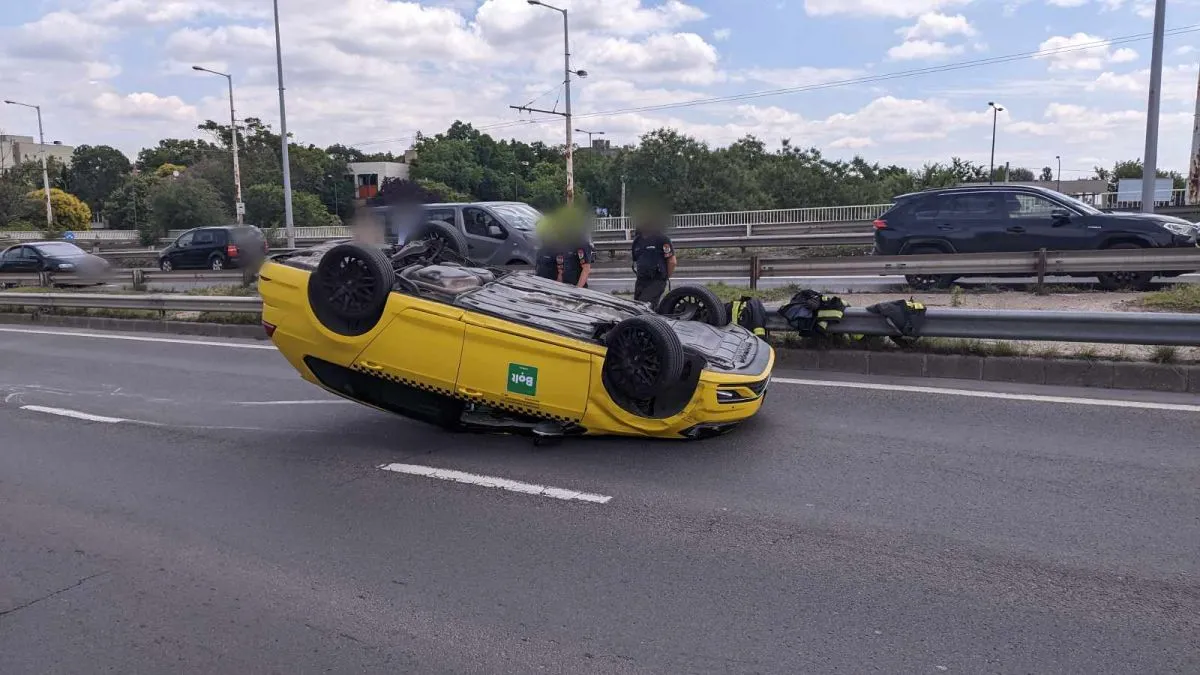 Dugó a felüljárón: felborult taxi állta el az M3-as bevezető szakaszát - fotóval