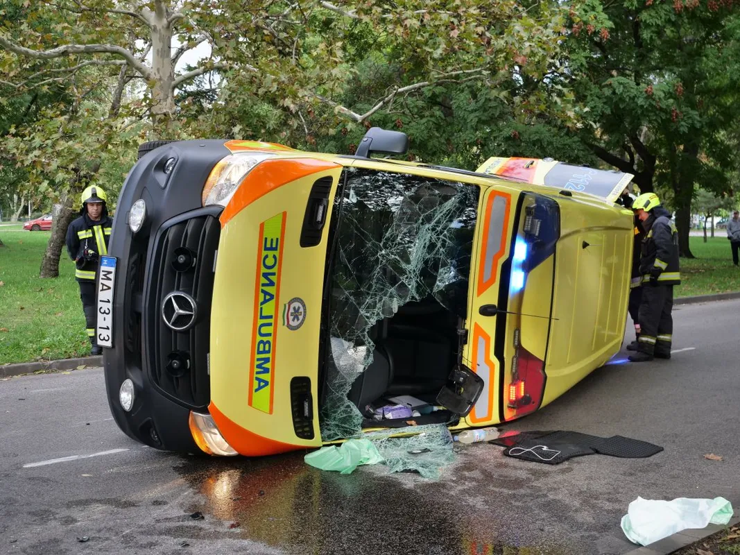 Vinczeffy Levente főhadnagy elmondta: a mentőautó az Apolló utcán közlekedett a Késmárk utca irányából, megkülönböztető fény- és hangjelzést használva, amikor a Nyírpalota útnál a kereszteződésben jobbról nekiütközött egy személygépkocsi, amelyben ketten ültek. Hozzátette: a baleset következtében a mentőautó felborult, a benne utazók megsérültek.