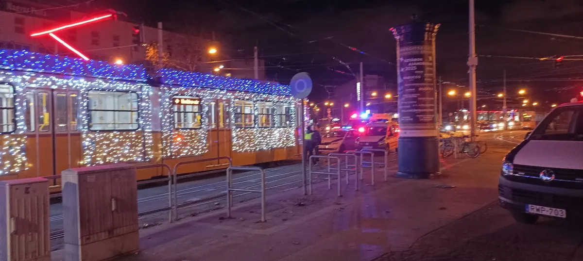 Baleset érte a budapesti fényvillamost, ellepték a helyszínt a mentők és a rendőrök