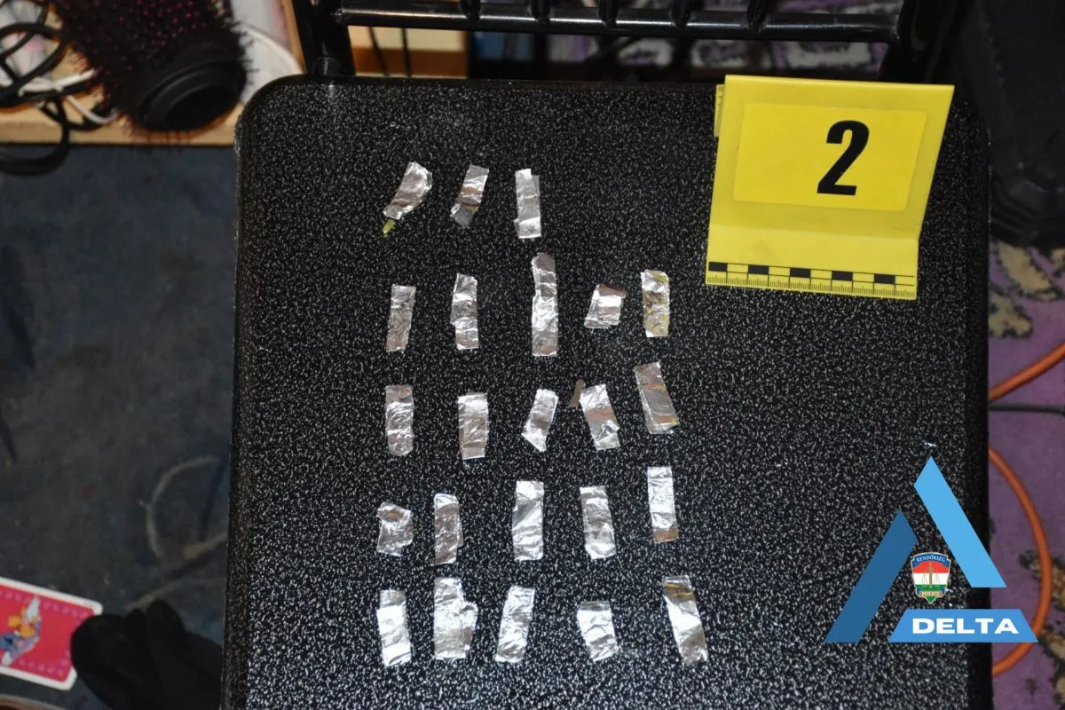 A rendőrök őrizetbe vették a 33 éves nőt, majd gyanúsítottként hallgatták ki. A kutatáskor a házában, egy zokniba rejtve 23 alumíniumpakettben fehér, porszerű anyagot találtak. Az előzetes vegyszakértői vélemény szerint a lefoglalt anyag új pszichoaktív anyag.