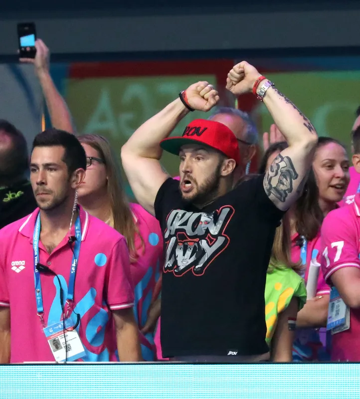 A Duna Arénában készült fotóinkon jól látszik, hogy Shane Tusup alkarjain továbbra is óriási tetovált számok jelzik Hosszú Katinka 200 és 400 méteres vegyesúszásban elért világcsúcsait, miként a bal bicepszén éktelenkedő nagy Iron Lady-varrás is megmaradt.