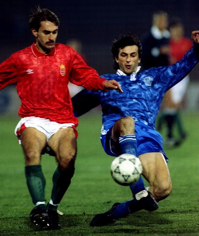 Kovács Kálmán egy 1993-as népstadionbeli meccsen, a görög Kalicakisz ellen