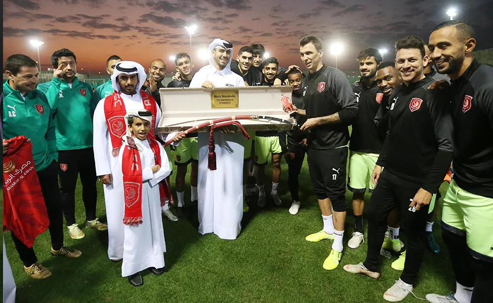 A Juventustól a katari al-Duhailhoz igazolt, 33 éves horvát vb-ezüstérmes csatárnak egy szurkoló díszes kardot nyújtott át.