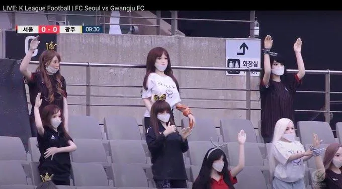 Az FC Szöulnál a szexbabák egy részét az együttes mezébe bújtatták, másik részük pedig buzdító üzeneteket tartalmazó táblákat „tartott” a Kvangdzsu elleni bajnokin, hogy ellensúlyozzák az üres széksorok hangulatát. Noha nézők nem lehettek jelen, a televízió közvetítette a találkozót, a szurkolók pedig az eset kapcsán elárasztották bejegyzéseikkel a közösségi médiát – írja az MTI.