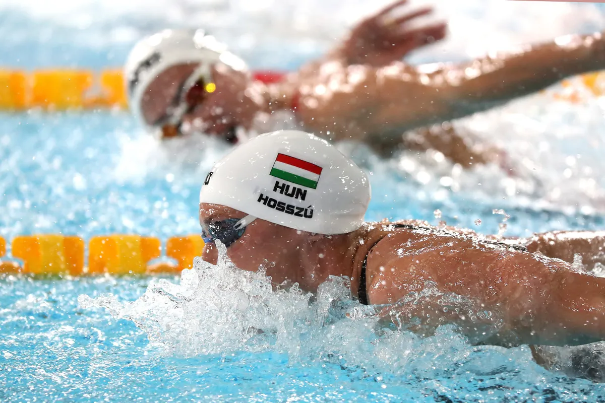 A napokban egyébként már a versenyzést imitálta az Iron Lady, egyedül úszott a Duna Arénában, majd a célba érkezést követően viccesen nyilatkozott.