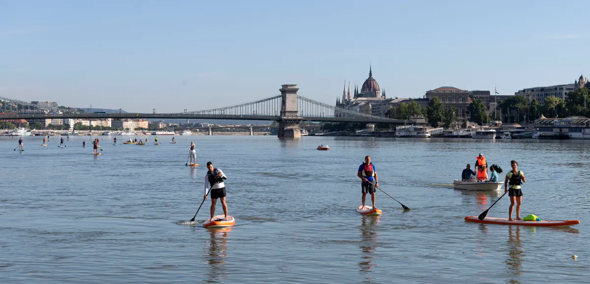 Baji, Kiss Gergő, Hrutka és a többiek – klasszisaink tucatjai túráztak SUP-on a Római-parttól indulva.