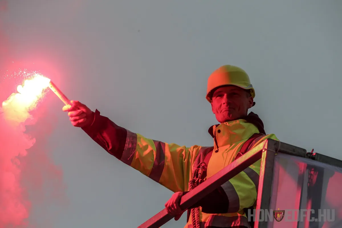 A drukkerek egy csoportja tavaly decemberben már az épület legmagasabb pontjának elérésekor, a hagyományos bokrétaünnepségen bejárhatta az új stadiont, majdani helyét a kapu mögötti lelátón.