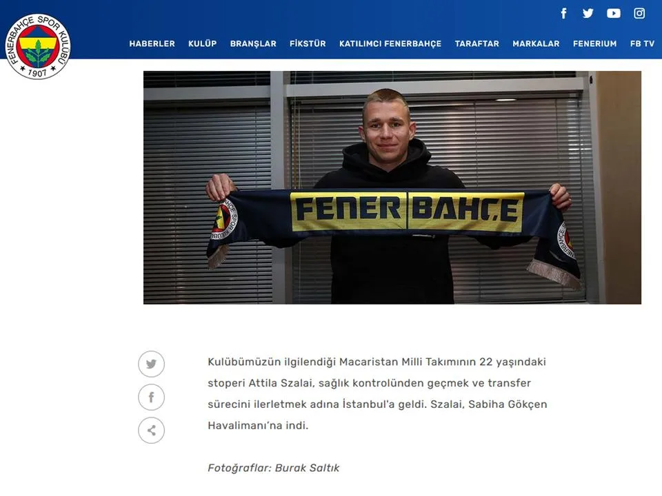„A magyar válogatott Szalai Attila Isztambulba érkezett, hogy állapotfelmérésen vegyen részt, elősegítve az átigazolási folyamatát” – jelentette ki honlapján a Fenerbahce focicsapata. A védő a hírek szerint 2 millió euróért igazol a ciprusi Apollonból Törökországba, az összegből 400 ezer eurót korábbi csapata, a Mezőkövesd kap.