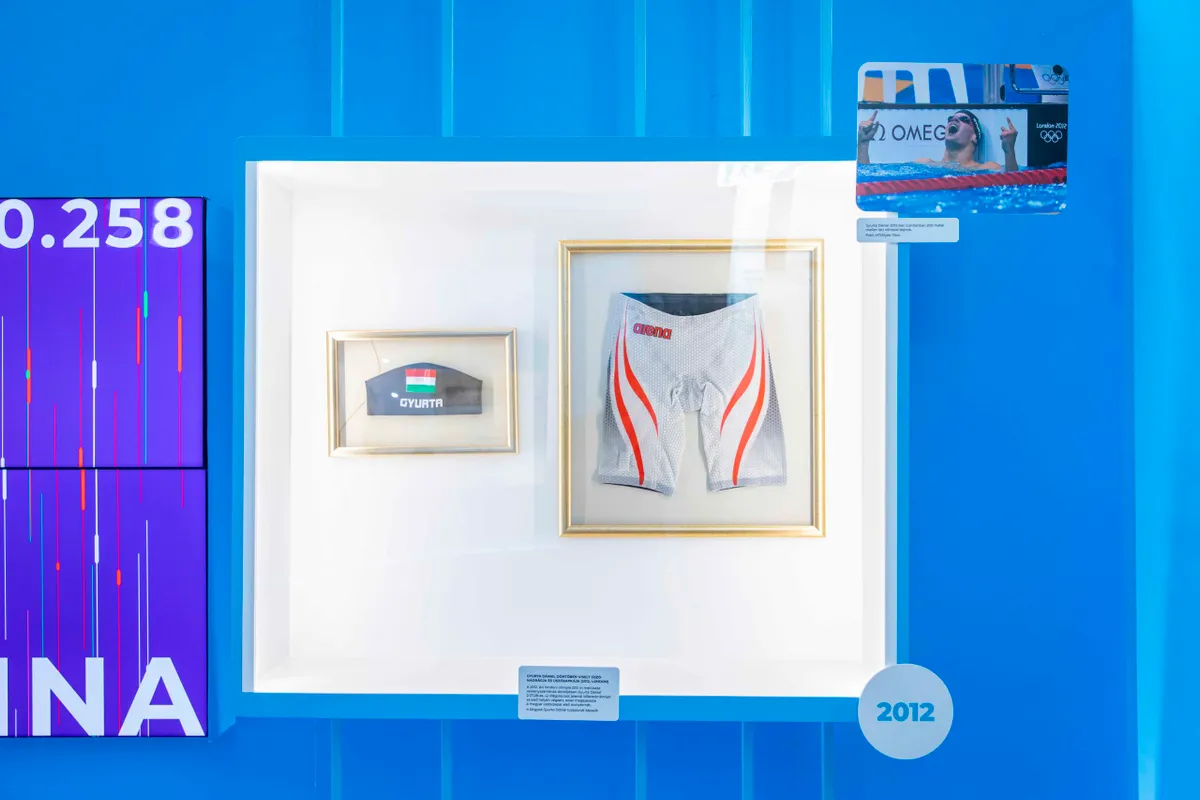 Gyurta Dani úszósapkája és nadrágja is vitrin mögé került. 2012-ben, a londoni döntőben, ebben a szettben szerezte meg a magyar úszócsapat első aranyérmét 200 méteres mellúszásban, és közben új világcsúcsot döntött 2.07,28-as időeredménnyel.
