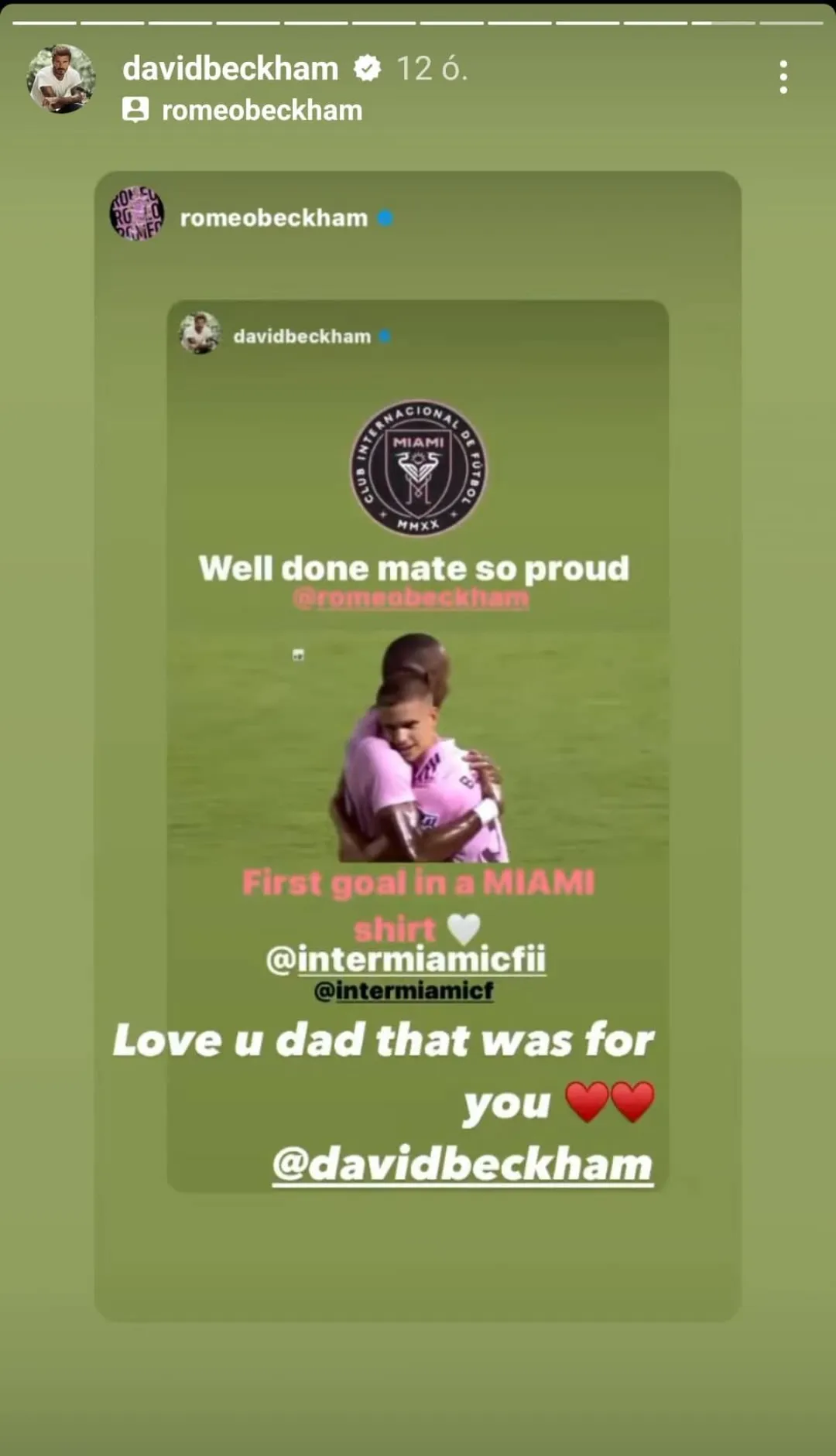 Romeo James Beckham édesapja csapatában, az Inter Miamiban bontogatja szárnyait. A második számú együttesben szerepel a 19 éves (Davidhez hasonlóan) jobbszélső, aki idei hét gólpassza mellett idén a 14. mérkőzésén megszerezte első gólját.