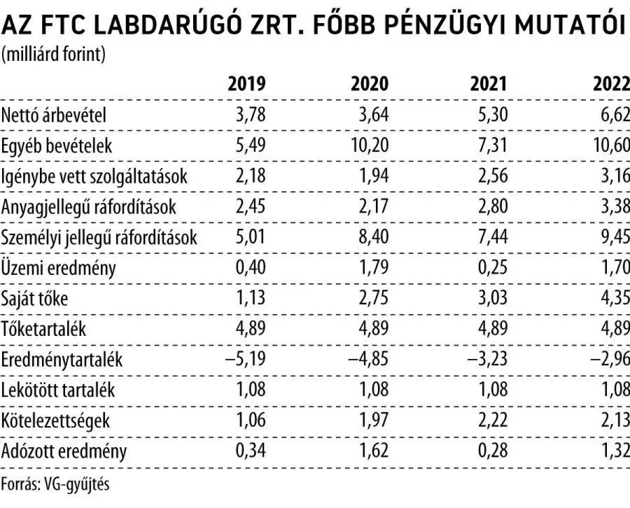 Vagyis a Ferencváros Labdarúgó Zrt. a tavalyi naptári évben 1,324 milliárd forintos nyereséggel zárt.