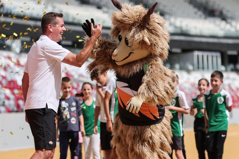 A bizonyítványt nyilván majd a nemzetközi szövetség elnöke fogja kiosztani. De ahhoz, hogy ez összejöjjön, szükségünk van egy ilyen gyönyörű létesítményre, négyszázezer szurkolóra, elképesztő tehetséggel megáldott sportolókra, és szükségünk van arra, hogy fergeteges hangulat legyen. A hangulatfelelős pedig nem más, mint egy rendkívül szórakoztató racka juh. Youhuu-val volt már lehetőségem találkozni, rendkívül szórakoztató és magával ragadó, és minden pillanat élmény vele