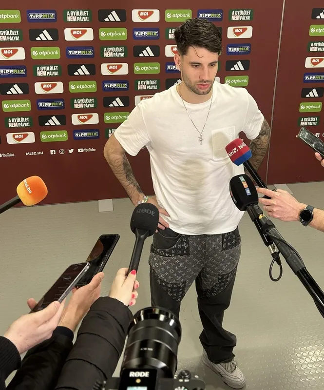 Szoboszlai az újságírók előtt már civil ruhában jelent meg, a Ripost fotóján az is látható, hogy a nyakláncán két keresztet is büszkén viselt.