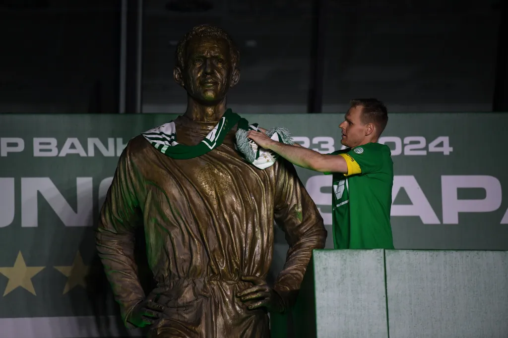 A lefújás után kezdődhetett a bajnoki fieszta, a szurkolók elözönlötték a pályát, a játékosok átvették a kupát és az aranyérmeket, sőt, hagyomány szerint sálat raktak Albert Flórián szobrára.