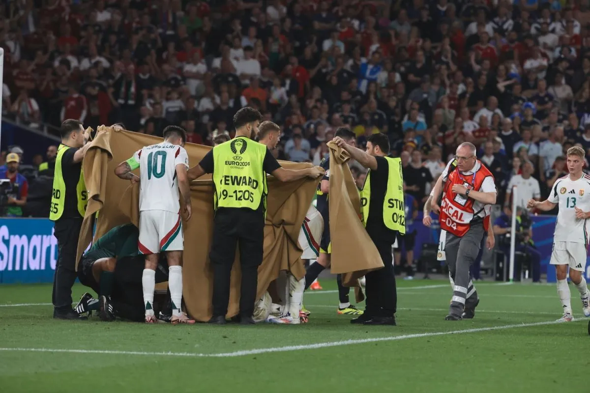 Az eső félidőben hiába volt többet a skótoknál a labda, helyzetek, kapuralövések a magyaroknál voltak. A második félidőben is folytatódott a feszült meccs, aztán egy szörnyű pillanat alatt bebizonyosodott, hogy a futballnál is vannak fontosabb, sokkal fontosabb dolgok. Egy borzasztó ütközés után Varga Barnabás a földön maradt, megmerevedett testén látszott, nagyon nagy a baj. Az orvosokkal együtt a látványt eltakaró pokrócokat is behoztak a pályára.