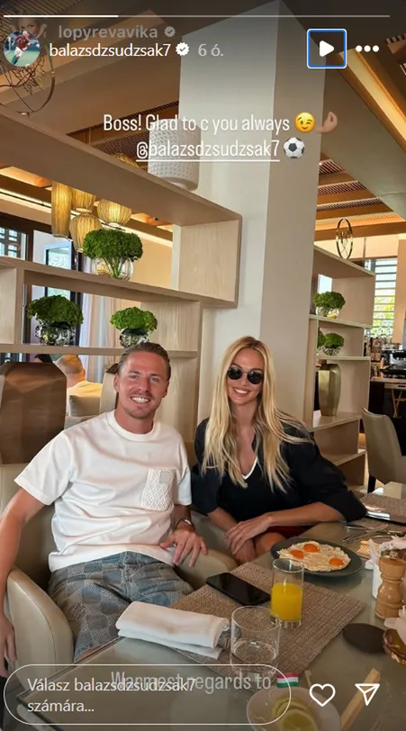 Dzsudzsák Balázs és Viktorija Lopirjova már évek óta ismerik egymást, jó barátok, és a közös fotó tanúsága szerint ismét jó hangulatban telt a közös időtöltés.