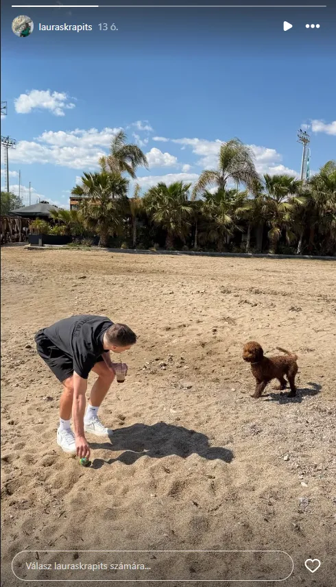 Varga Barnabás legutóbb tavaly májusban osztott meg közös fotót a párjával, amikor megkérte a kezét – Laura pedig boldogan mondott igent. A 31 éves válogatott focista azóta a magyar rekordbajnok Ferencvárosból a görög AEK Athénhoz igazolt, és rendre oszt meg labdarúgással kapcsolatos tartalmakat az Instagram oldalán. Menyasszonya viszont januárban is töltött fel magukról fotókat, most pedig azt mutatta meg, hogyan játszik Varga a kiskutyájukkal a görög tengerparton.