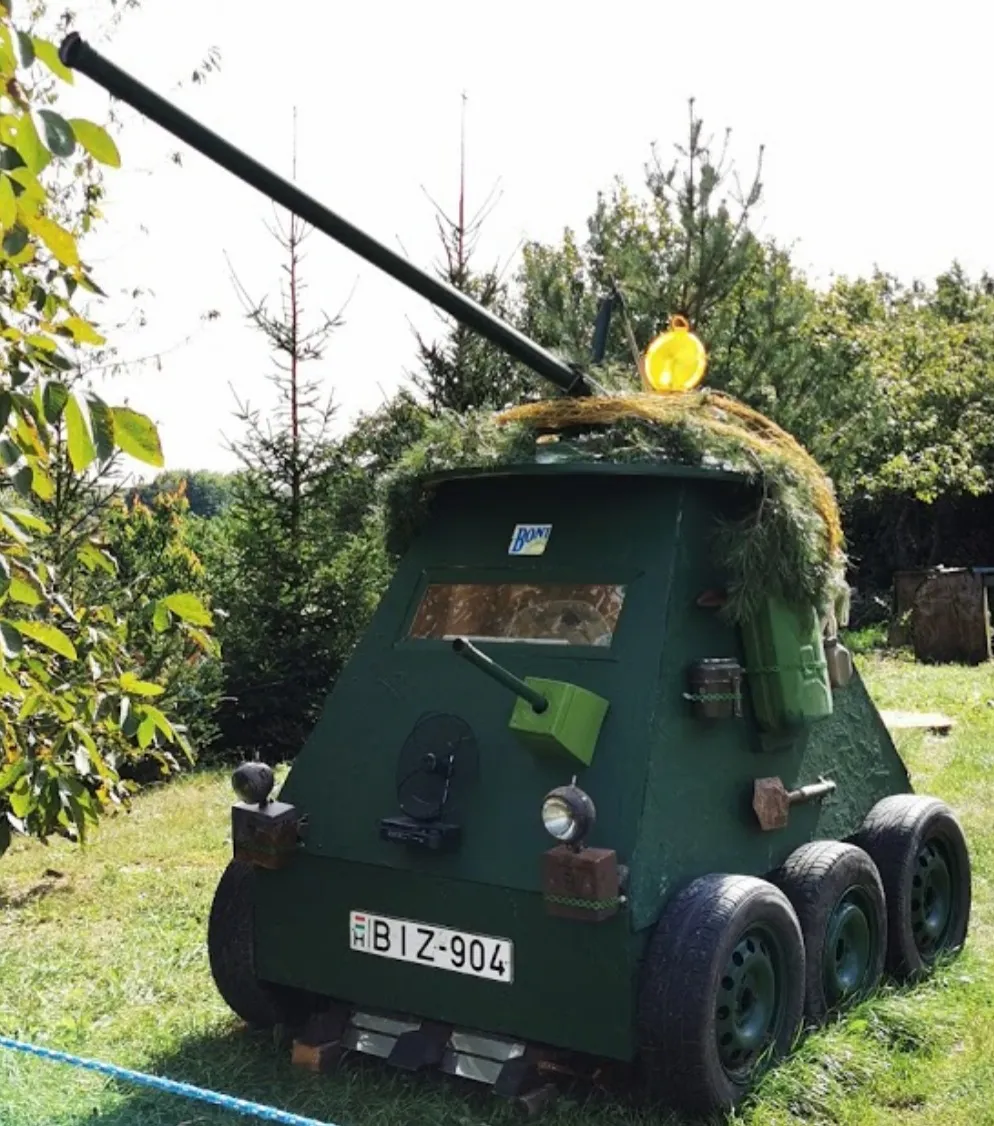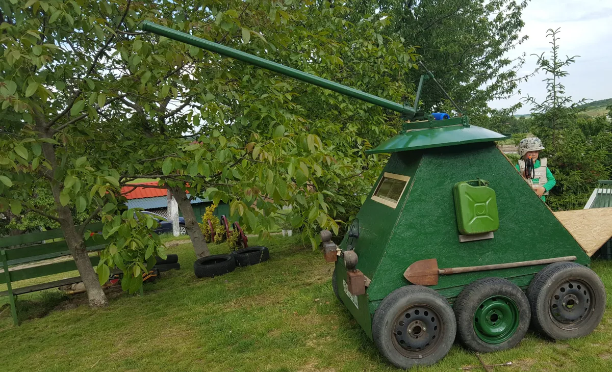 Minden nagyi rajong az unokákért, de azért valljuk be, kevesen építenének ennek jegyében tankot egy gyereknek. A Károlyfalván élő Bonifác nagypapája viszont gondolkodás nélkül nekiállt unokája kedvéért tankot barkácsolni – ötletével pedig páratlan sikert aratott. A zöld színével terepbe illeszkedő, könnyű testű harckocsi kis képzelőerővel épp olyan, mint az igazi. Nem páncélos ugyan, hisz oldala furnérból készült, de ágyúcsövének iránya legalább állítható. Van jó sok kereke, príma üzemanyagtartálya és tartozik hozzá egy gyalogsági ásó is – elakadás esetére.