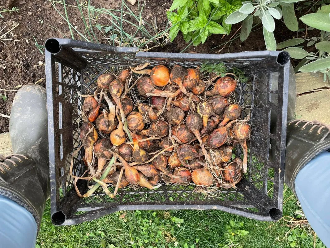 Az elmúlt hónapok szárazsága és a rendszeres locsolás hatására a talaj igencsak összetömörödött, ami azt jelenti, hogy kézzel nem biztos, hogy ki tudod húzni a hagymákat. De nem is kell erőltetni; érdemes megvárni, hogy elmúljanak a csapadékos napok, és eső után felszedni a hagymákat, amikor puha a föld. Ha így is bent marad valamelyik, ásóval jó mélyen nyúlj alá, hogy egyben ki tudd fordítani.