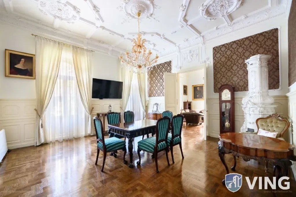 Jelenlegi Tulajdonosa kímélte őket, és a fűtést (mivel a gázcsöveket teljesen visszabontatta a műemléki miliő, és a falak védelme érdekében, bár a gázóra megmaradt a lakásban) csúcstechnikás elektromos Noirot radiátorokkal oldotta meg. A melegvizet szintén árammal működő tartály biztosítja. A lakásban a csodálatos kristálycsillárok a Kolarz osztrák lámpagyártól érkeztek, a beépített lámpák pedig a Flos spanyol lámpagyár termékei. A lakás árába beletartozik természetesen a 4 műemlék kályha, a csillárok, lámpák, a lakásillatosító rendszer, a karnisok és függönyök, riasztó, kamerarendszer, valamint a tükrök is. Ezek közül külön érdekesség a szalonban lévő, mely egyidős a lakással, és ugyanúgy restaurálva lett a benne található festménnyel együtt, mind a falburkolatok. A lakásban található, szintén nagy értékű bútorok tárgyalás alapját képezhetik. Az ingatlan cégtulajdonban van, per-, teher- és igénymentes. [...]”