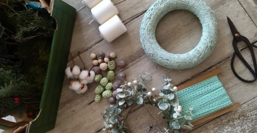 Koszorúalap, néhány örökzöld hajtás, apró termések, növényágak, drót és kötöző. A legtöbb kelléket barkács- vagy hobbiboltban tudod megvásárolni, de a terméseket, örökzöld ágakat akár egy kirándulás közben is össze tudod gyűjteni a környékről. Ha minden megvan, akkor jöhet a munka: a koszorú kellékein kívül szükséged lesz még egy fogóra és egy erős ollóra is.