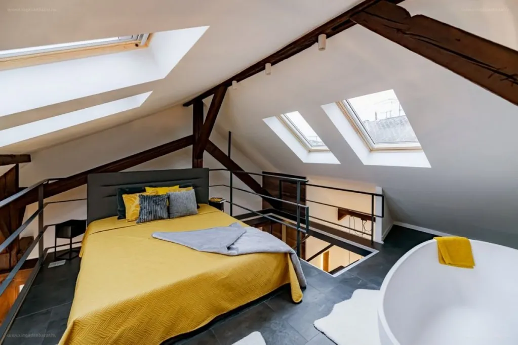 A LOFT hangulatú lakás, reprezentatív terekkel és egyedi hangulattal rendelkezik. A számos ablaknak és észak-keleti tájolásának köszönhetően nemcsak világos, de a Vár gyönyörű panorámáját is nyújtja.