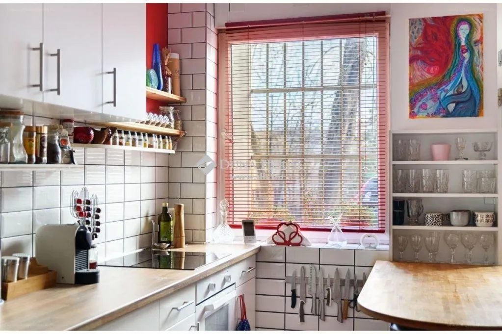 A 15 lakásos villaépület földszintjén kínálunk eladásra 44 m2-es, akadálymenetesen megközelíthető, teljes körűen felújított egyszobás lakást. Az egyedi készítésű fehér konyhabútor, fehér gránit mosogató a piros fallal modern és hangsúlyos része a lakásnak. A keleti tájolású nappaliból a sok zöldet, gesztenyefákat látni. A fűtés 4 db infra panellel működik. A buja kertbe közvetlen kapcsolat nyílik a lakásból. A kertben lévő padon órákon keresztül gyönyörködhetünk a látványban.
