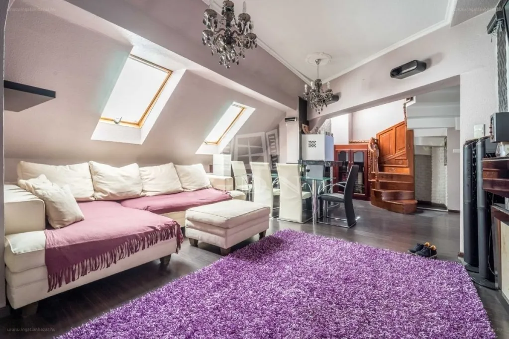 “Lenyűgöző VÁROSI PANORÁMA! 33 m2-es SAJÁT TETŐTERASZ! VI. kerület kedvelt részén a Hajós utcában kínálunk eladásra egy nem mindennapi ingatlant. A 106 négyzetméteres lakás az 5. emeleten helyezkedik el, belső kétszintes, kandallóval, és két szaunával is felszerelt. A társasház liftes, így kényelmesen megközelíthető az ingatlan.