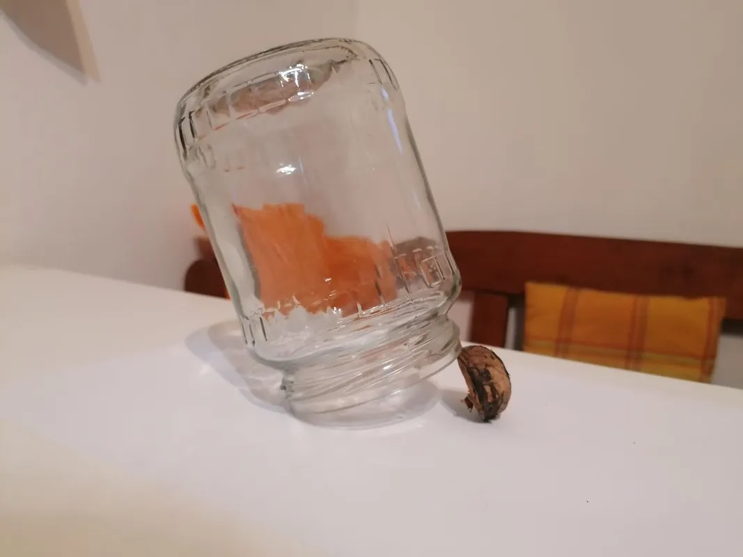 Az egyik legismertebb módszer, amit nagyanyáink is alkalmaztak. Törj félbe egy diót, szedd ki a belét, és tegyél szalonnát a héj belsejébe (ezt imádják az egerek). A befőttesüveget fordítsd szájával lefelé, és tedd a szája alá a fél diót; a legnehezebb kiegyensúlyozni a csapdát, de kitartó kísérletezéssel sikerülni fog. A szalonnás fele befelé, az üveg alá nézzen a diónak. Így, amikor az egér az üveg alá megy falatozni, kilöki a diót az üveg alól, és az rázáródik. Érdemes egy tálcára állítani a csapdát, mert amint felemeled a befőttesüveget, az egér egy pillanat alatt kisurran a résen.