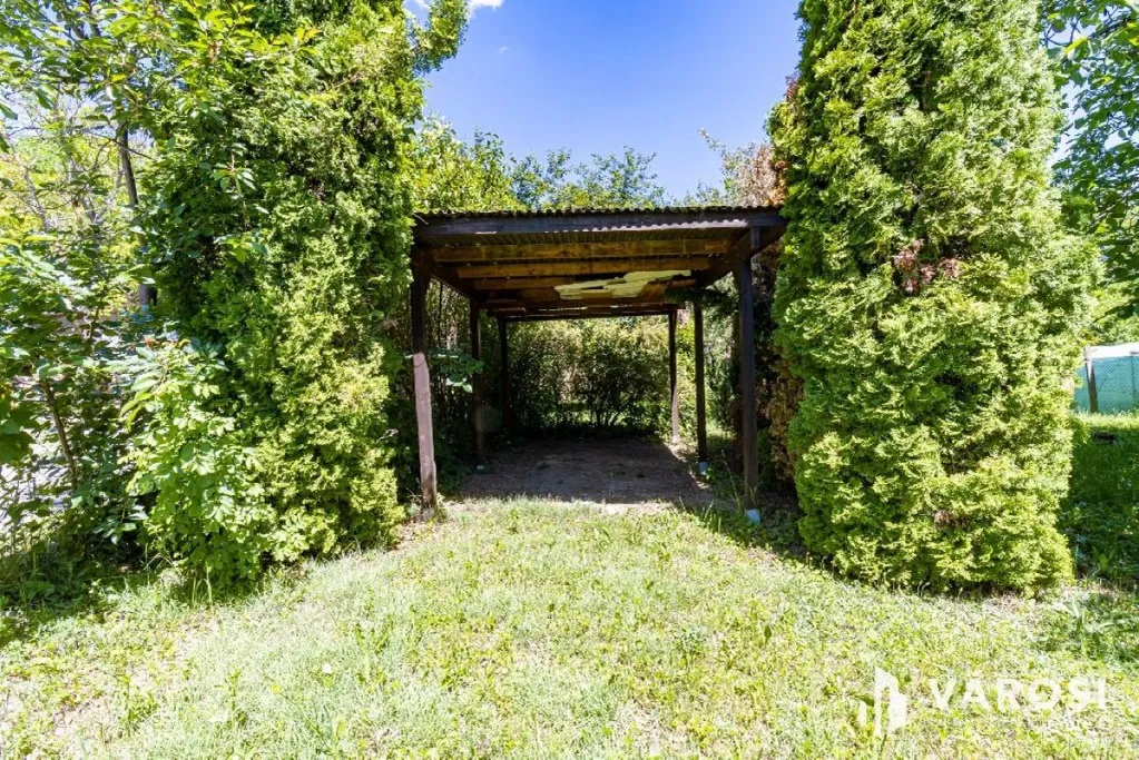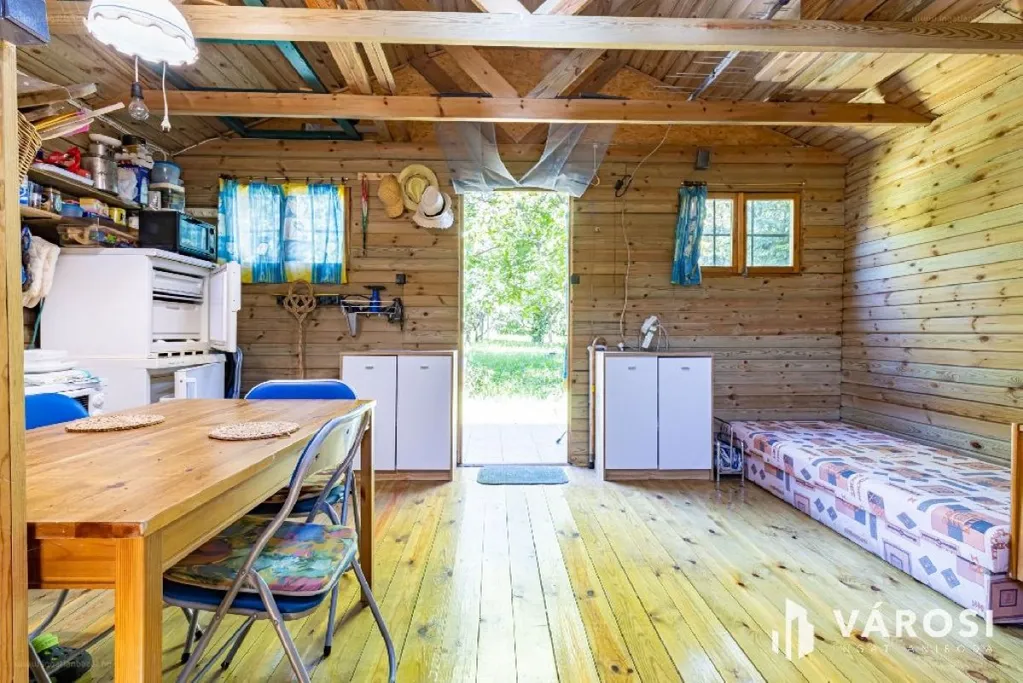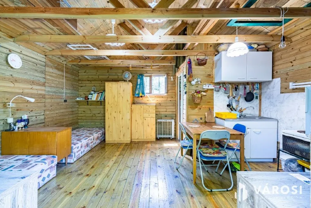 A szigetelt faház udvar besorolású telken áll, és 22 m2-es az alapterülete. Könnyű odatalálni, mert családi házakkal beépített részen található, aszfaltozott utcában. A faház elektromos radiátorral jelenleg is fűthető és villanybojler melegíti a vizet.