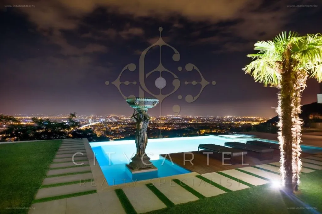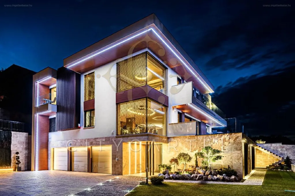 Az exkluzív, újépítésű, panorámás, medencés, liftes ingatlan egy 2209 nm-es telken áll. Eleganciát és kényelmet biztosító paraméterei lenyűgözőek: