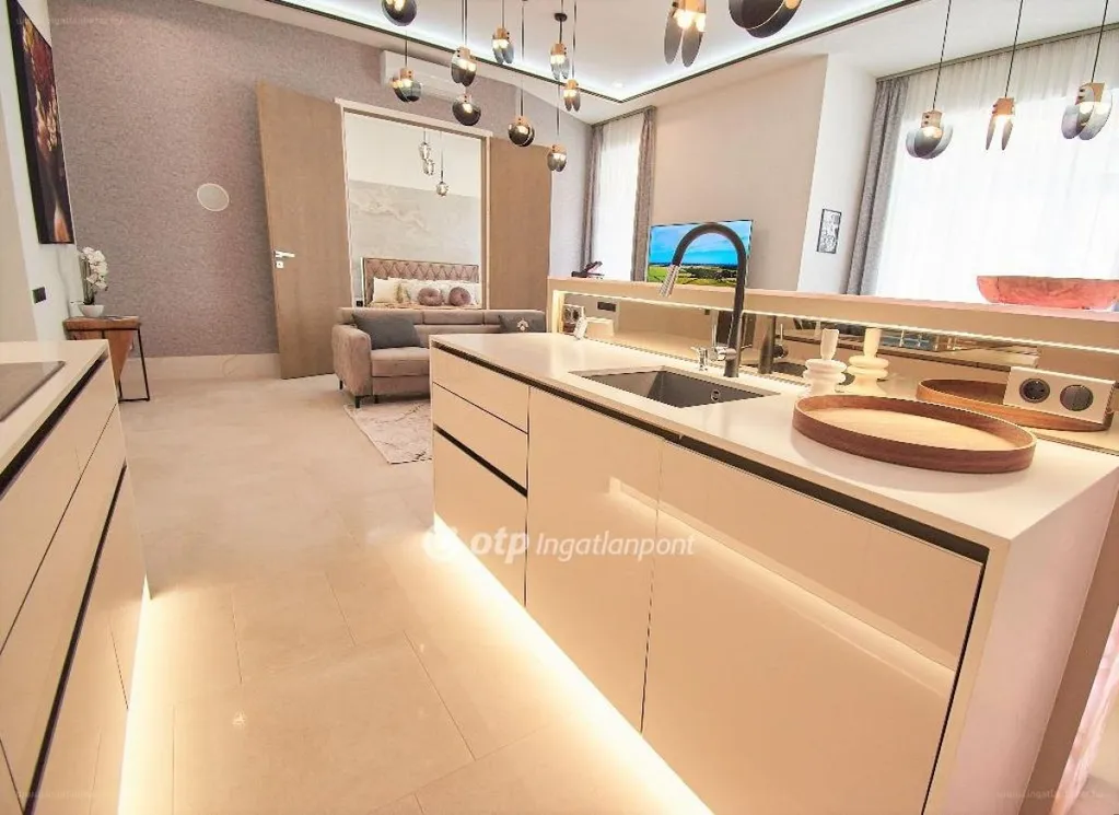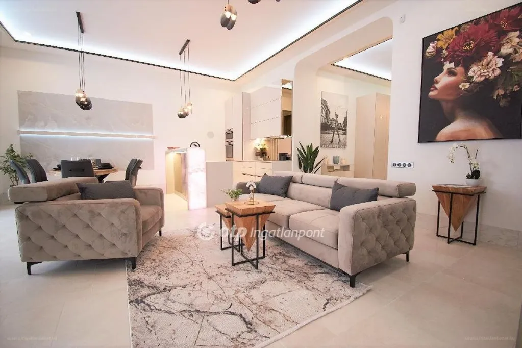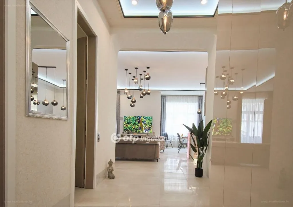 Bútorzattal és minden luxussal együtt kínálják megvételre az Ingatlanbazáron hirdetett, frissen felújított, 3. emeleti lakást. Itt álljunk is meg egy szóra: a teljes bútorzat egyedileg készített, minőségi darab, amely a beépített gépekkel együtt az új tulajdonosra vár. A tehermentes lakás így azonnal költözhető.