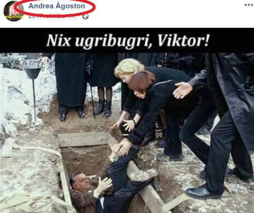 A korábban liberális színekben futtatott politikusnő egy olyan fotóval kampányol amelyen a kormányfőt egy sírgödörből próbálják kihúzni. A már hosszabb ideje folyamatosan megosztott, most újból közzétett poszt alá ezt írták:„Meghal Orbán Viktor és már a mennyországba menne”. A képfelirat meg ennyi: Nix ugribugri Viktor!