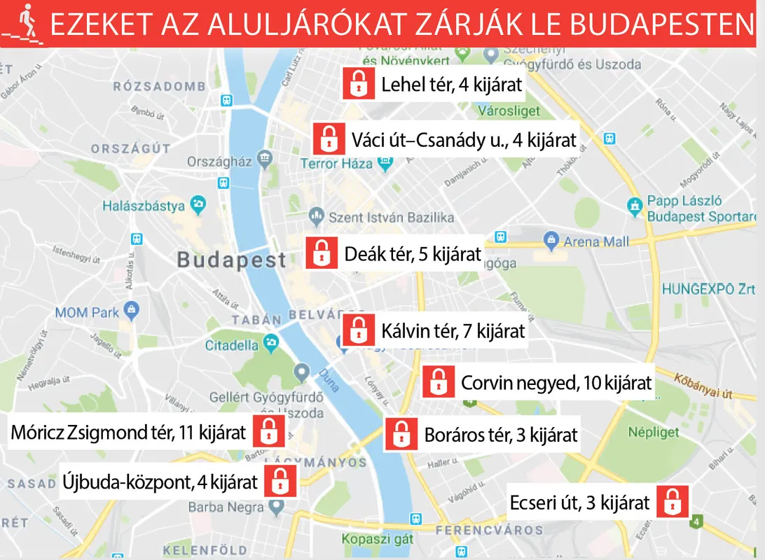 Ezt a 9 aluljárót zárják le éjszakára Budapesten