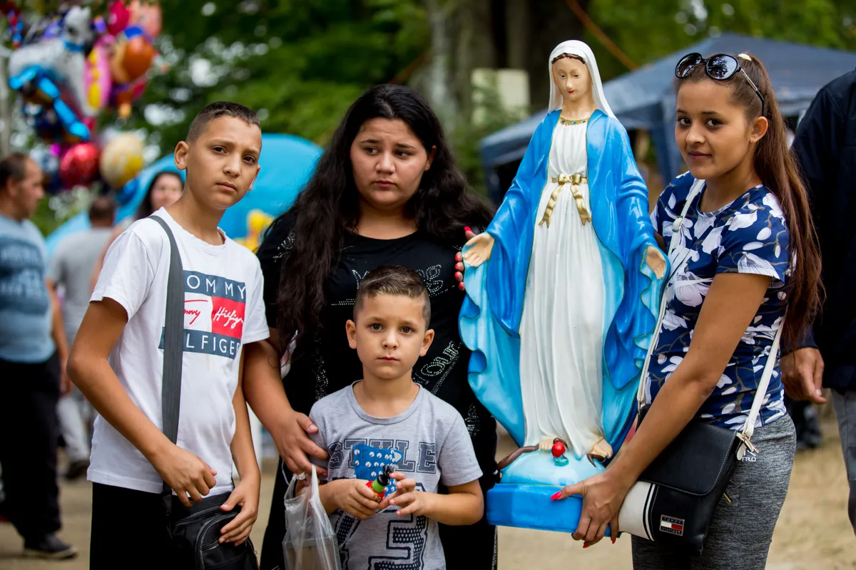 47 ezer forintért vették a vásárban Lakatosék a Mária-szobrot, amit a helyszínen meg is szenteltettek. A gyerekek büszkén vitték haza az ereklyét. A képen: Valentina, Rikárdó, Melinda és Sanyika.