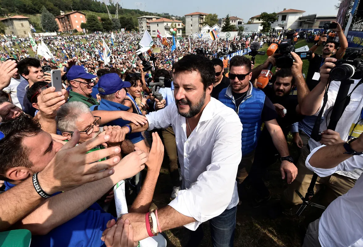 Miközben a „senki által meg nem választott” Conte-kormány a hatalmat és a bársonyszékeket választotta, a Liga a hamarosan ismét „győztes és igazi Olaszországot” képviseli. Kifejtette, hogy a baloldal migrációs politikája „rabszolgatartó, rasszista, gyarmatosító”, mivel szerinte emberek százezreit kényszeríti Afrikából Európába, hogy kizsákmányolja őket, ezzel egy időben „feláldozza” az európai népek nemzeti identitását, kultúráját, történelmét.