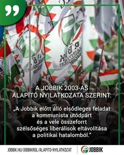 Már régen elfelejtették, vagy csak nem akarnak rá emlékezni, mi áll 2003-as alapító nyilatkozatukban: „A Jobbik előtt álló elsődleges feladat a kommunista utódpárt és a vele összeforrt szélsőséges liberálisok eltávolítása a politikai hatalomból.”