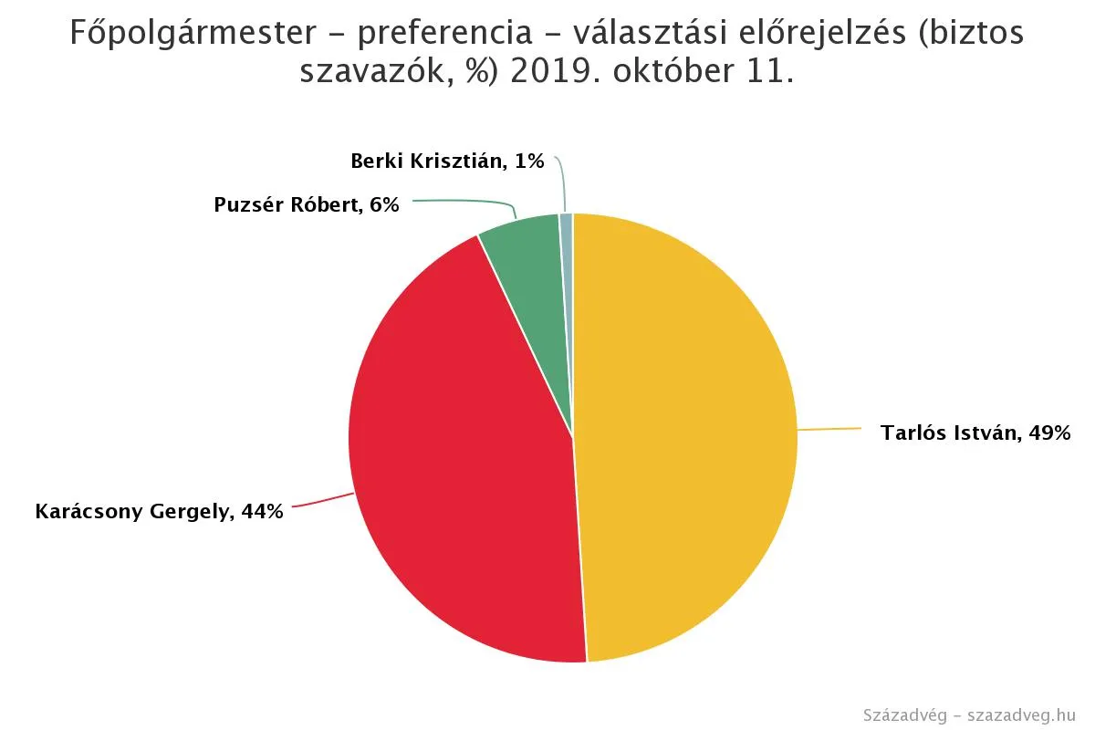 Természetes jelenségnek tekinthető, hogy az intenzív kampánytevékenység hatására a kampány utolsó napjaiban éleződik a verseny az egyes jelöltek között: a válaszadók 49 százaléka voksolna a regnáló főpolgármesterre, míg Karácsony Gergely támogatottsága 44 százalék. Puzsér Róbert jelenleg 6 százalékon áll, Berki Krisztiánra mindössze a válaszadók 1 százaléka szavazna. A voksolásig hátralévő napokban kulcsszerepe lesz a mozgósító tevékenységnek, melyben a kormánypártok általában eredményesebbek, azonban a kampány során aktivizálódó protest szavazók megjelenése jellemzően az ellenzéki jelölteknek kedvez.