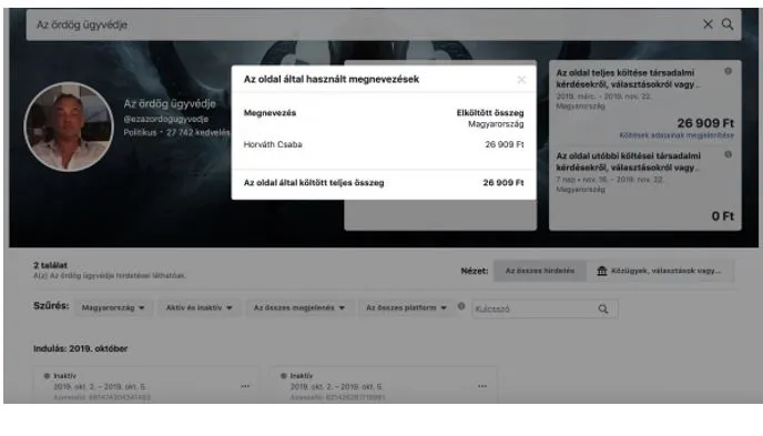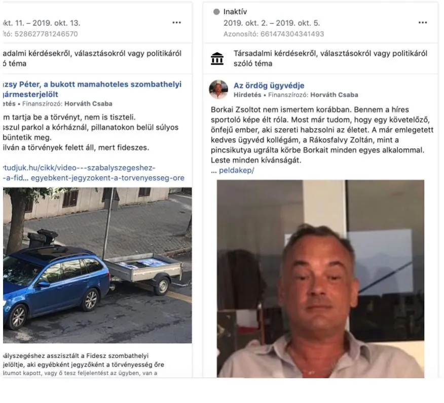 A Borkai Zsolt elleni videókat beharangozó Ördög Ügyvédje oldal és a szombathelyi fideszes polgármesterjelölt elleni facebookos lejárató kampányokat ugyanaz a személy finanszírozta, egy bizonyos Horváth Csaba. Ez a Facebook által közzétett hirdetési adatokból derül ki.