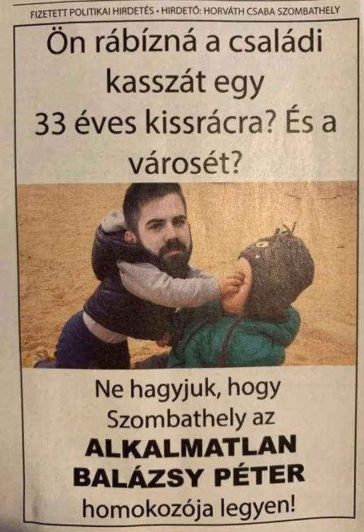 A Balázsy Pétert lejárató oldalon szereplő egyik fotómontázst az év elején baloldali irányítás alá került szombathelyi városi lapban is szerepeltették fizetett hirdetésben. Finanszírozóként ott is feltüntették a Horváth Csaba nevet, de nehogy valaki a fővárosi, zuglói szocialista Horváth Csabára asszociáljon, a nyomtatott lapban neve mellé azt is odaírták, hogy “Szombathely”.