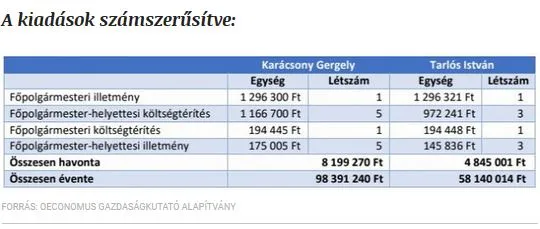 Ezek alapján a fizetések a most felállt testület vezetőinél összesen évente közel elérik a 100 millió forintot, szemben a Tarlós-éra 58 milliós tételével. Nem számítva az egyéb juttatásokat (gépjárműhasználat,