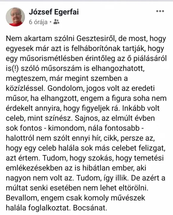 A Karácsony Gergely által is megjutalmazott (korábbi) férj szerint kár annyira siratni Gesztesi Károlyt.