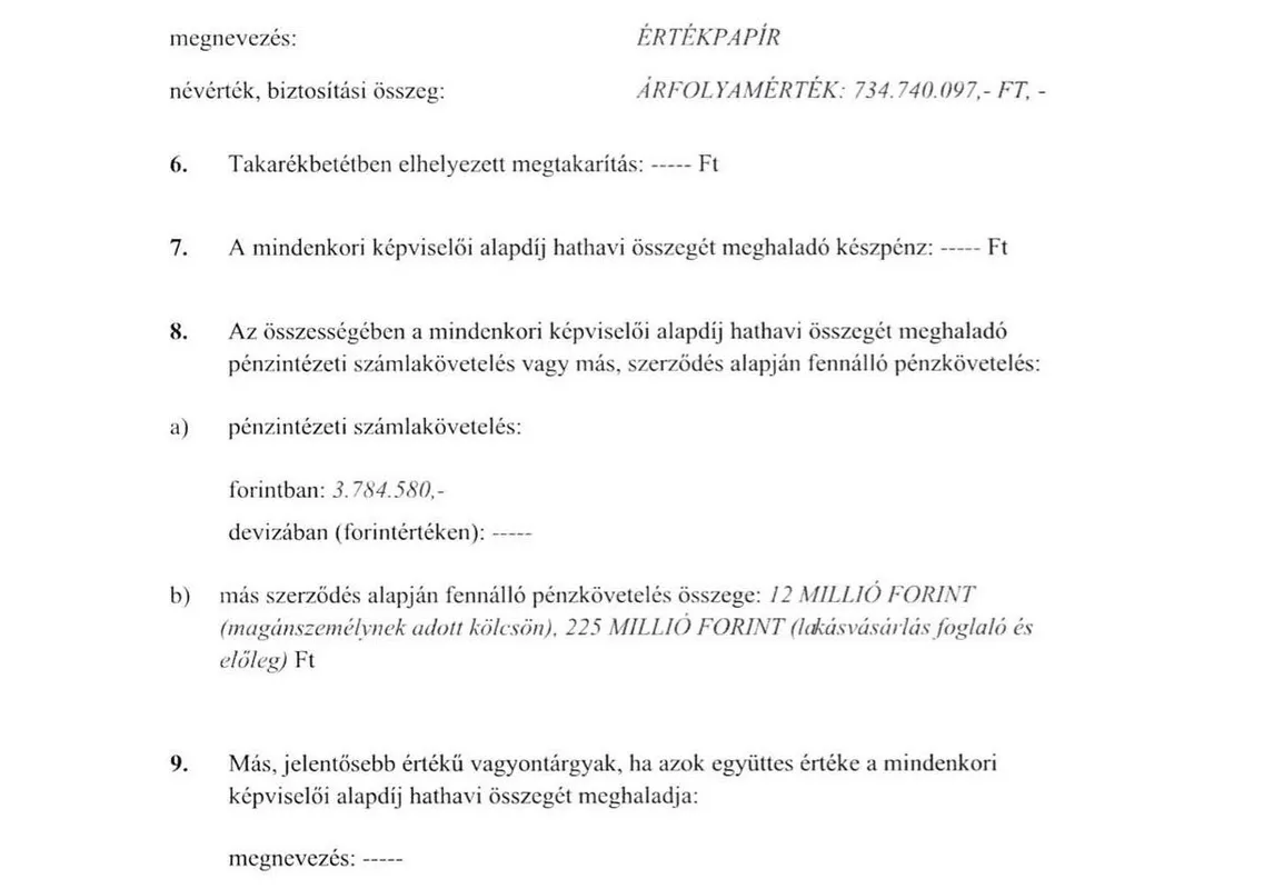 A 8. pont b. pontjában a luxusingatlan 225 milliós előlege. A teljes vagyonnyilatkozatban itt gyönyörködhet)