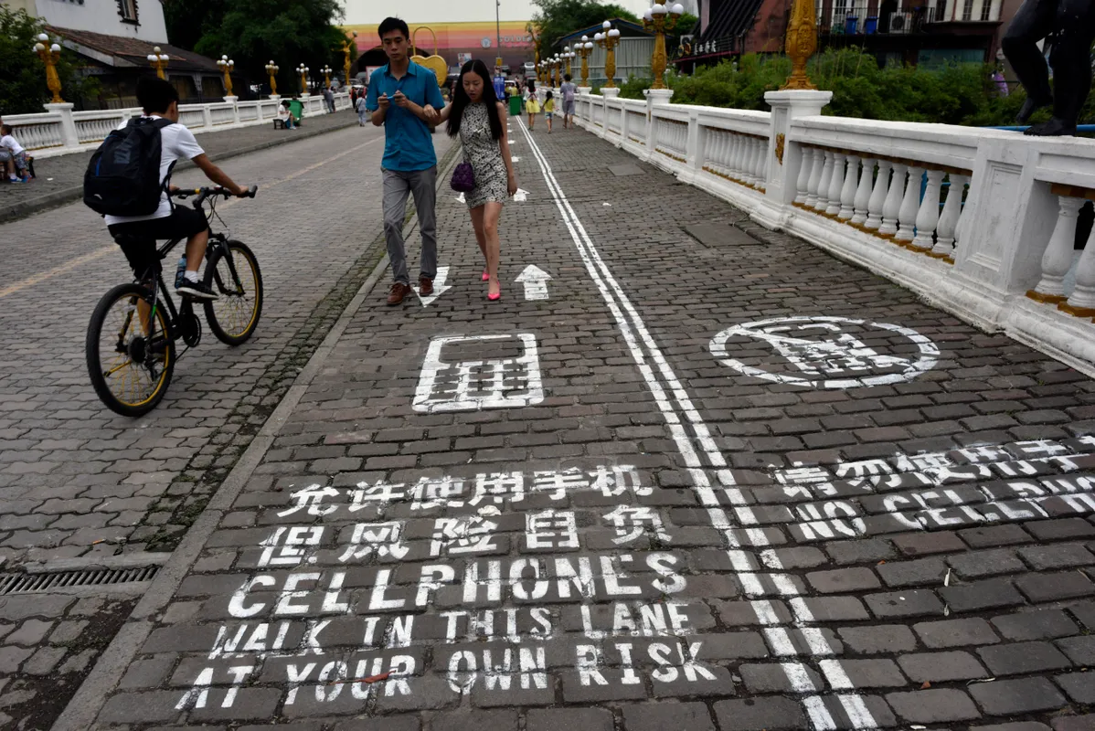 Elsőként Ázsiában, a kínai Chongqingban, majd Amerikában, az USA fővárosában, Washingtonban, azt követően pedig Európában, a belgiumi Antwerpenben jelöltek ki külön sávot a járdán, illetve a sétálóutcában a mobilozóknak. A szakemberek ugyanis megfigyelték, hogy az okostelefonjukba merülők számára megszűnik a külvilág, így lassabban és figyelmetlenebbül közlekednek, veszélyeztetve a többi gyalogost. Pedig mennyivel egyszerűbb és biztonságosabb lenne, ha az emberek séta közben le tudnák tenni a mobilt...