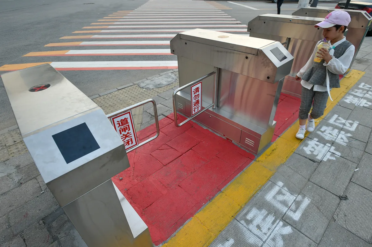 Szalagsorompót is telepítettek Kínában, melynek lényege, hogy a két, piros színű kordon felemelkedik, ha mehetnek a gyalogosok és útakadályt képez, amikor tilos lelépniük a járdáról.