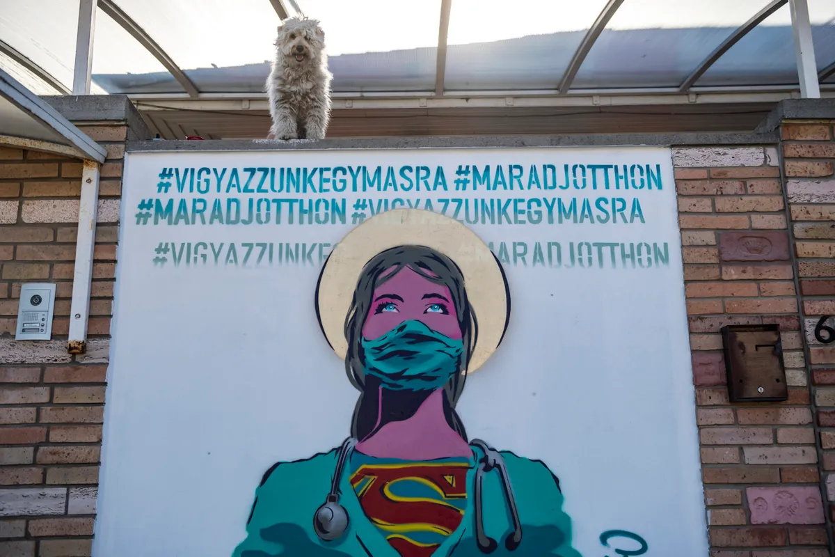 A Magyarországon készült alkotás Jézust, az orvost és a szuperhőst kombinálva üzent az arra járóknak a koronavírus-járvány idején.