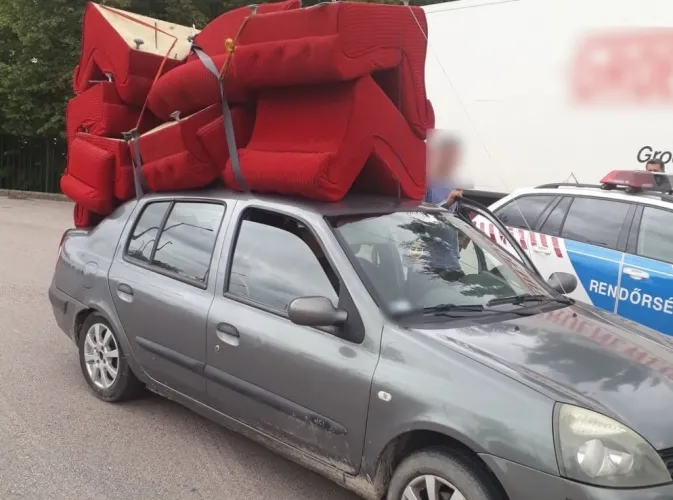 Székesfehérváron a Seregélyesi úton szállította bútorait, amikor meglátták, hogy személyautója tetején összesen hét fotelt szállít, amik egyrészt teljesen kitakarják hátrafelé a kilátást, másrészt nincsenek is megfelelően rögzítve az autón.
