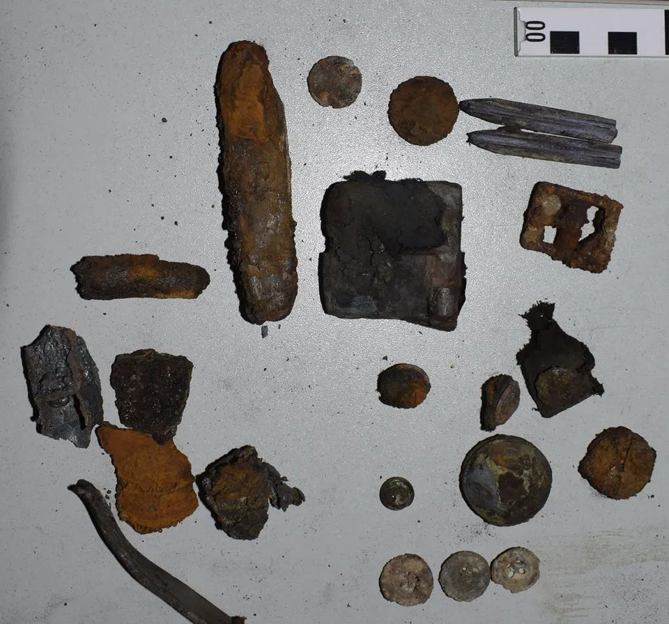 A feltárás során nem találtak olyan leletet (például azonossági jegytokot vagy névvel ellátott személyes tárgyat), amelynek alapján már a helyszínen azonosíthatták volna az elesett hősöket. A későbbi vizsgálatok során viszont kiderült, hogy egyenruha-maradványok, gázálarc, személyes tárgyak (zsebkés, pénztárca) is előkerültek.